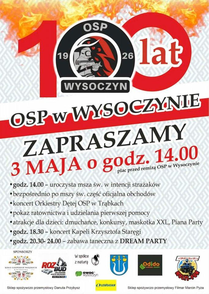 Już w niedzielę, 3 maja 2026 roku, w Wysoczynie, gm. Sobienie-Jeziory odbędzie się wielkie wydarzenie – jubileusz 100-lecia działalności Ochotniczej Straży Pożarnej. To ważny moment nie tylko dla druhów, ale także dla całej lokalnej społeczności. Organizatorzy zapraszają wszystkich mieszkańców oraz gości do wspólnego świętowania.