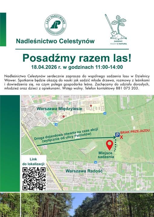 A dla tych, którzy chcą jeszcze wziąć udział – jest szansa. W sobotę, 18 kwietnia Nadleśnictwo Celestynów organizuje otwarte sadzenie lasu w Dzielnicy Wawer w Warszawie, w godzinach 11:00–14:00. Wstęp wolny, szczegółowa lokalizacja na mapce poniżej.