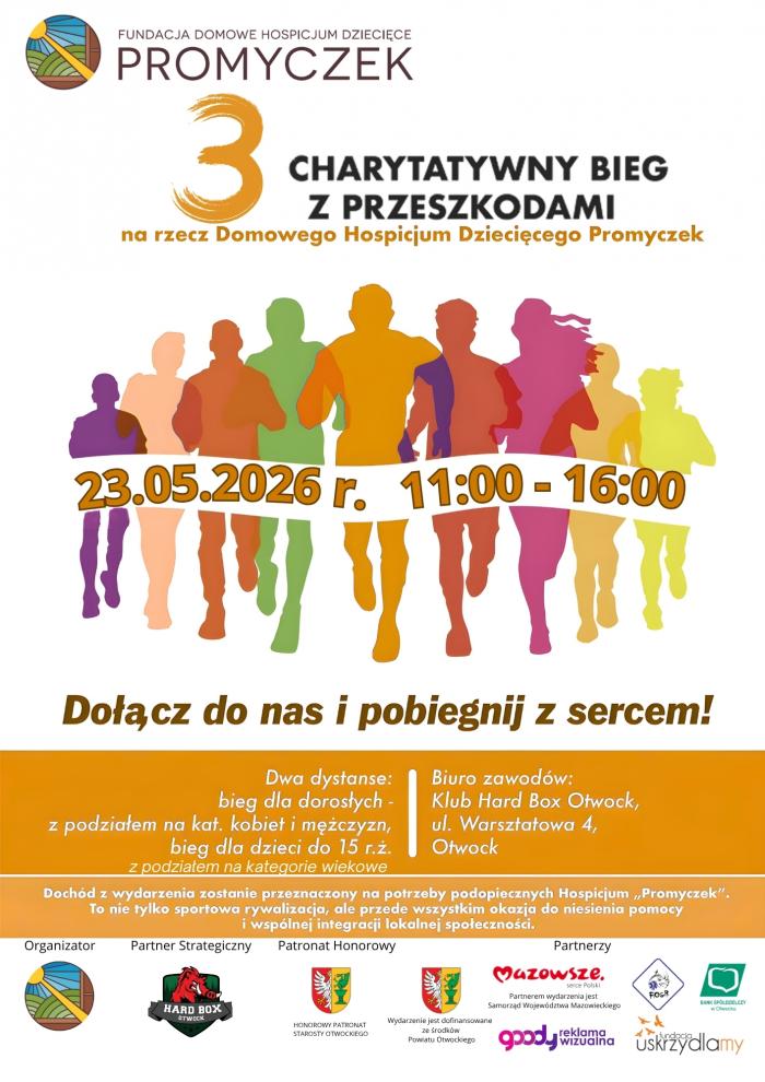 Już 23 maja 2026 roku w Otwocku odbędzie się fantastyczne wydarzenie, które łączy sport, dobrą zabawę i realną pomoc. Mowa o III Charytatywnym Biegu z Przeszkodami dla Promyczka, organizowanym na rzecz Domowego Hospicjum Dziecięcego „Promyczek”.