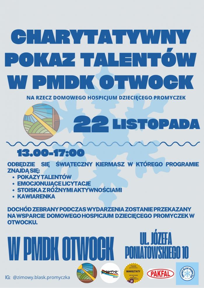 Już 22 listopada w PMDK w Otwocku odbędzie się Charytatywny Pokaz Talentów na rzecz Domowego Hospicjum Dziecięcego „Promyczek”.