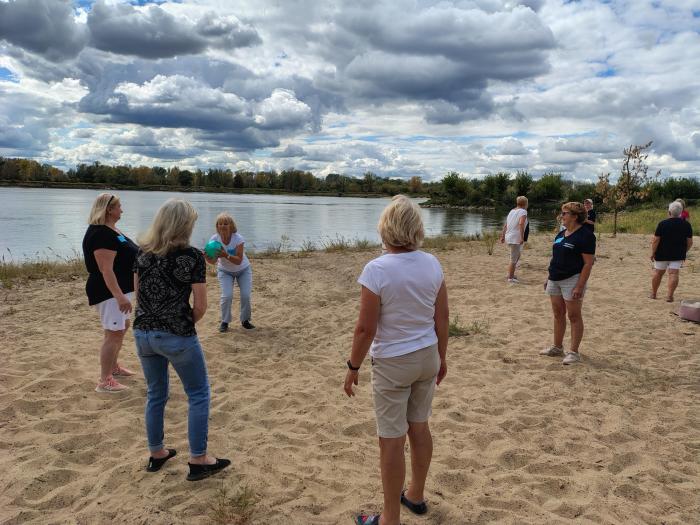Piłka plażowa na malowniczych brzegach, spacery z kijkami nordic walking na świeżo modernizowanych wałach obsypanych różnorodnymi kwiatami uświetniły integrację mieszkańców Nadbrzeża i Seniorów z Powiatu Otwockiego. Podsumowanie projektu było okazją do recytacji wierszy związanych z walorami Wisły, przez osoby zrzeszone w Klubie Miłośników Poezji przy Powiatowej Bibliotece Publicznej w Otwocku.