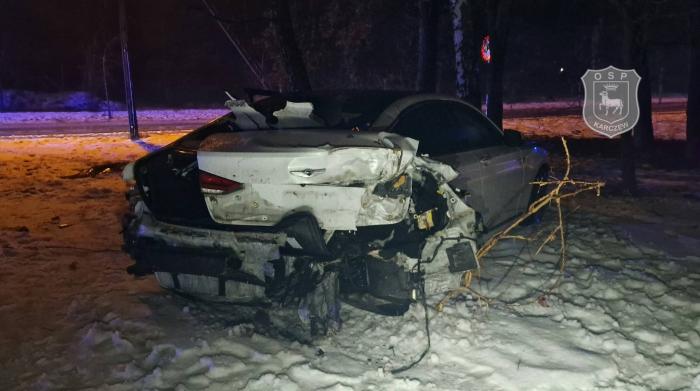 W nocy z soboty na niedzielę w Karczewie doszło do groźnie wyglądającego zdarzenia drogowego. Samochód marki Hyundai uderzył w ogrodzenie, a następnie w drzewo. Auto zostało mocno rozbite. Na szczęście kierowcy nic się nie stało.
