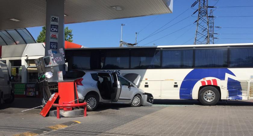 • Również w środę (30.05) doszło do dość kuriozalnego zdarzenia na stacji paliw Orlen w Józefowie. Niefrasobliwy kierowca crossovera marki Peugeot, wykonując manewr, uszkodził dwa auta osobowe, autobus i dystrybutor (zdjęcie główne). Prawdopodobnie nie poradził sobie z automatyczną skrzynią biegów. Kierowca został ukarany mandatem 400 zł i 6 punktami karnymi.