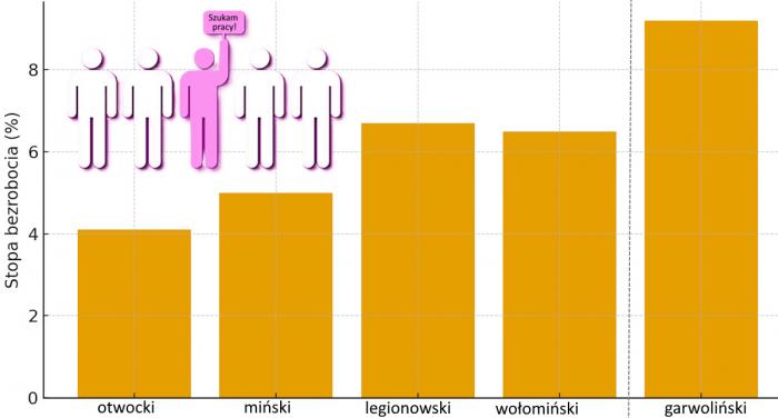 W powiecie otwockim natomiast stopa bezrobocia wzrosła z 3,9 do 4,1 procent. Choć to wzrost o 0,2 punktu procentowego, lokalny rynek pracy nadal prezentuje się korzystniej niż w wielu innych powiatach Mazowsza. Dla porównania: w powiecie mińskim wskaźnik wyniósł 5,0 proc., a w legionowskim - 6,7 proc.