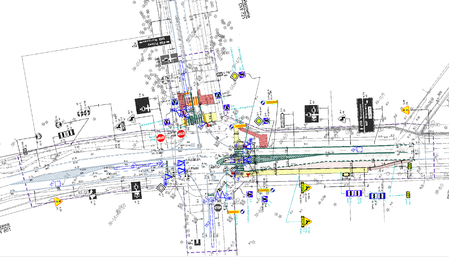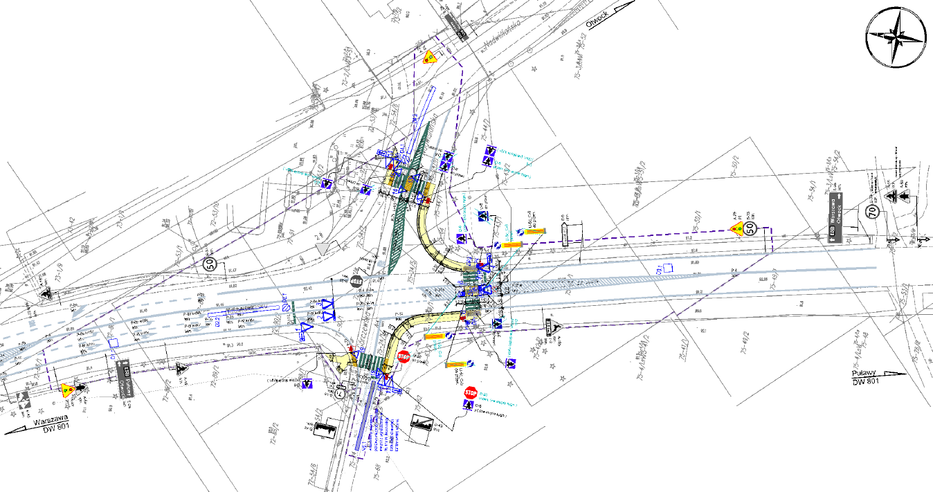 [Projekt budowy sygnalizacji świetlnej na skrzyżowaniu DW801 z DW721. Źródło: UM MZDW/Józefów. Projekty w wyższej rozdzielczości -pdfy w załącznikach poniżej ]