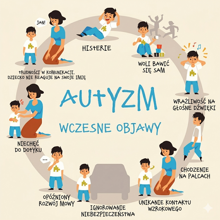 Wykrywanie: Pierwsze symptomy, takie jak brak kontaktu wzrokowego czy brak reakcji na własne imię, są zauważalne często już przed 2. rokiem życia. Wczesna diagnoza pozwala na szybsze wdrożenie odpowiedniej terapii.