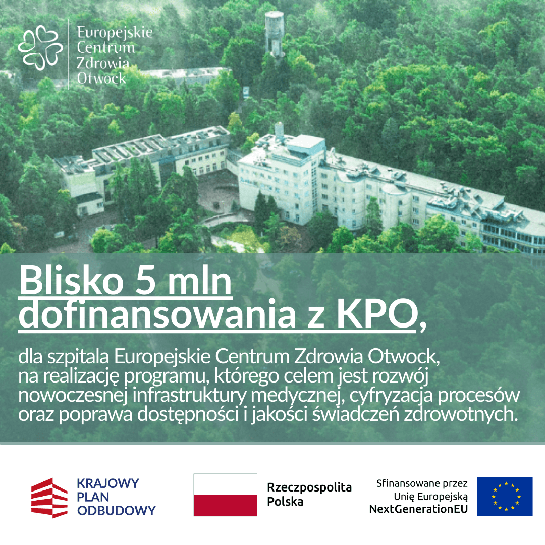 Szpital Europejskie Centrum Zdrowia w Otwocku otrzymał dofinansowanie z Krajowego Planu Odbudowy i Zwiększania Odporności (KPO) na rozwój nowoczesnych rozwiązań cyfrowych. Projekt ma usprawnić funkcjonowanie placówki oraz poprawić jakość obsługi pacjentów.