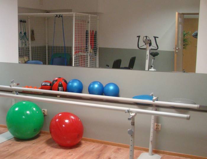 W kolejnej części spotkania goście mieli okazję obejrzeć sale i gabinety. Panie Monika Jankowska kierownik administracyjno-gospodarczy oraz Aleksandra Bochenek kierownik rehabilitacji służyły wszelkimi informacjami na temat obiektu oraz jego możliwości.