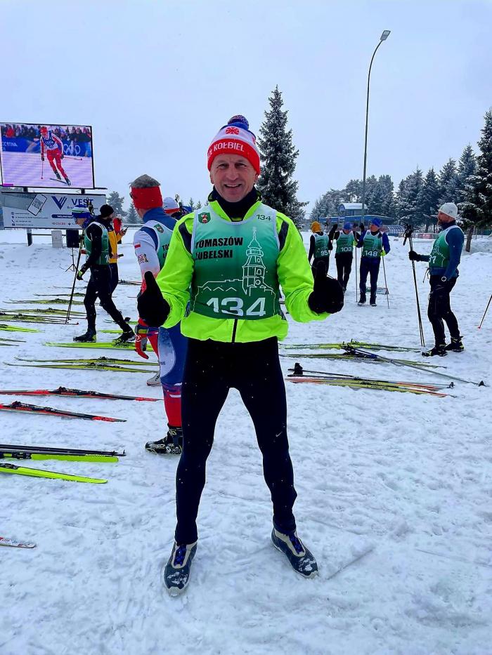 [Wójt Kołbieli biega tez na nartach. Fot. Facebook/Sylwester Winek]