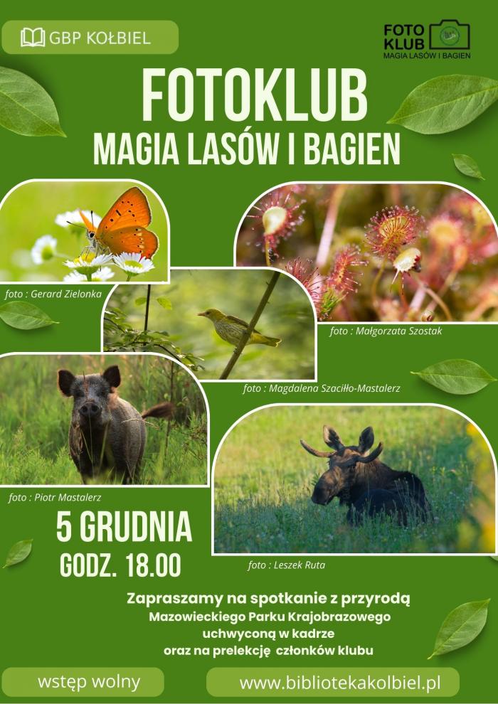 Fotoklub „Magia Lasów i Bagien” zrzesza fotografów amatorów i profesjonalistów, w tym członków Związku Polskich Fotografów Przyrody. Działalność klubu koncentruje się na etycznym podejściu do fotografii przyrodniczej oraz na dokumentowaniu krajobrazów i przyrody regionu. W centrum zainteresowania znajdują się obszary Mazowieckiego Parku Krajobrazowego, zwłaszcza lasy i tereny bagienne rejonu Celestynowa, a także okolice powiatów otwockiego, mińskiego i garwolińskiego.