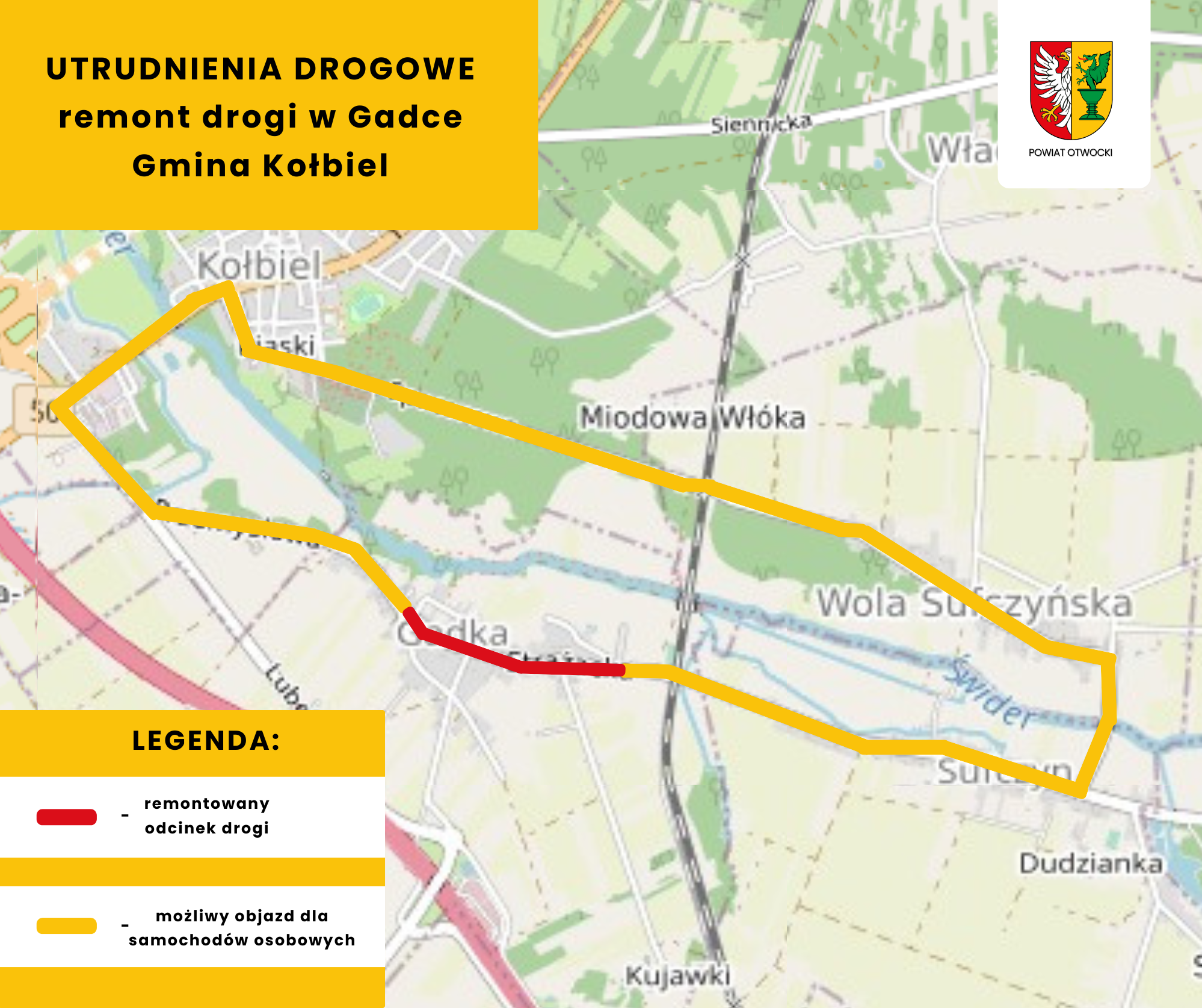 W najbliższych dniach, zaczynając od 18 grudni, mieszkańcy Gadki, Sufczyna i okolic z gminy Kołbiel muszą spodziewać się utrudnień na drodze powiatowej 2739W - ulicy Strażackiej, gdzie będą prowadzone prace drogowe - poinformowało starostwo powiatowe w Otwocku.