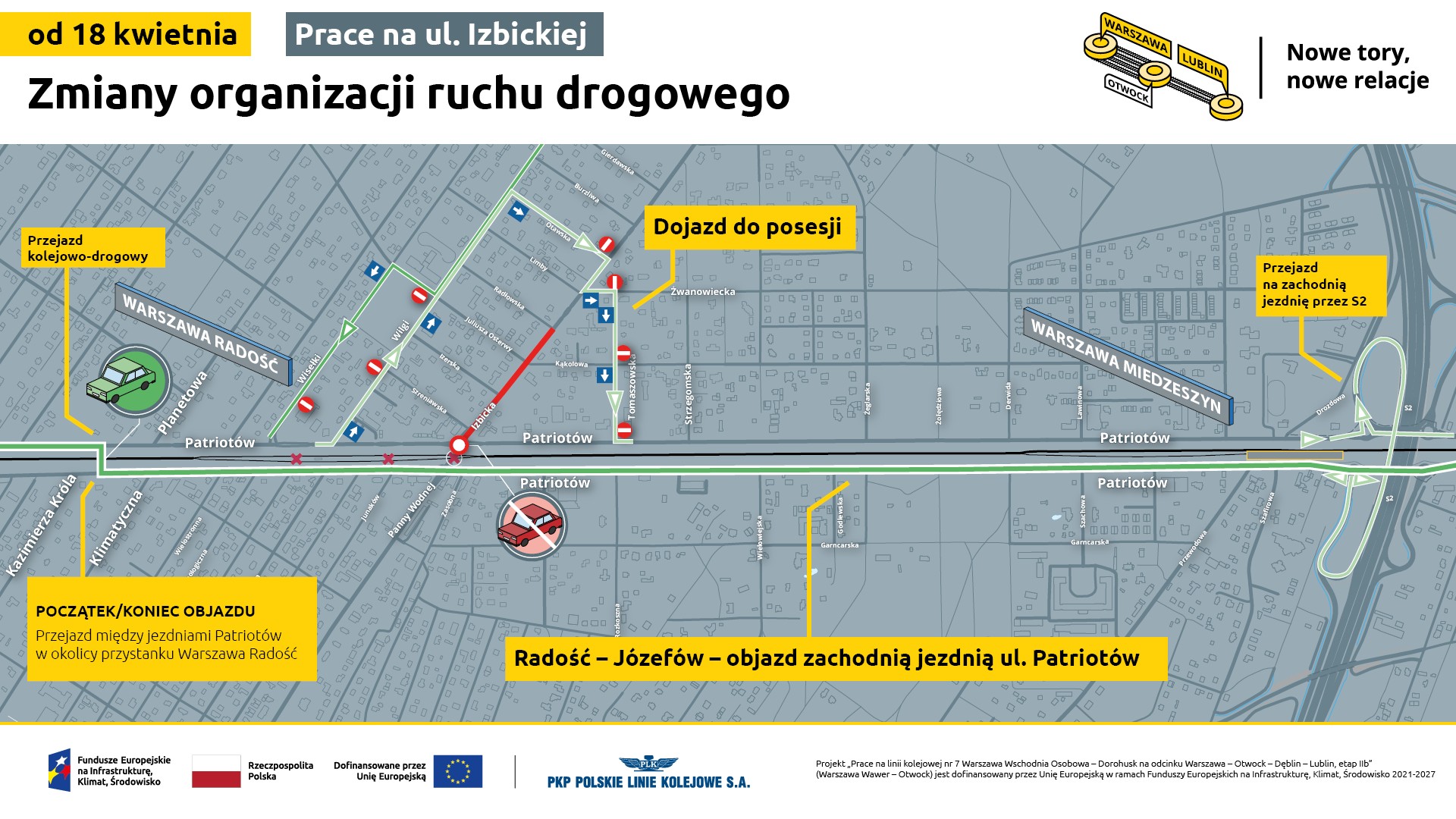 Od soboty, 18 kwietnia, kierowcy podróżujący między Józefowem a warszawską Radością muszą przygotować się na istotne zmiany w organizacji ruchu. W związku z postępującymi pracami przy modernizacji linii kolejowej nr 7, realizowanej przez spółkę Polskie Linie Kolejowe S.A., wprowadzony zostanie objazd zachodnią stroną torów.