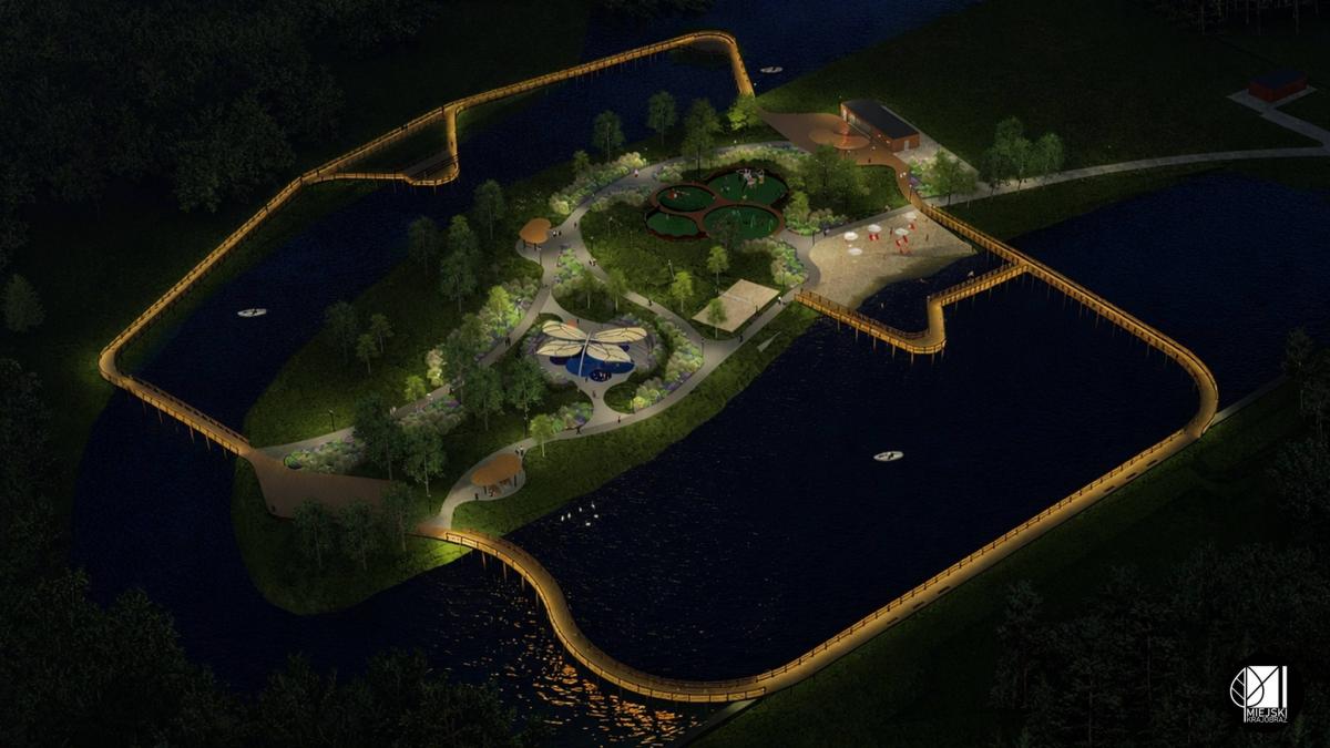 Wizualizacja terenu nad Moczydłem po rewitalizacji, nocą