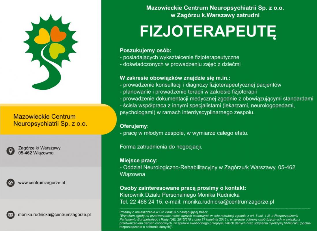 Mazowieckie Centrum Neuropsychiatrii Sp. z o.o. w Zagórzu k/Warszawy zatrudni